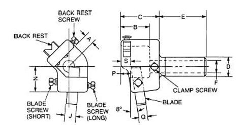 tangentially and are set in the body and adjusted like box tool blades. A set screw is provided for