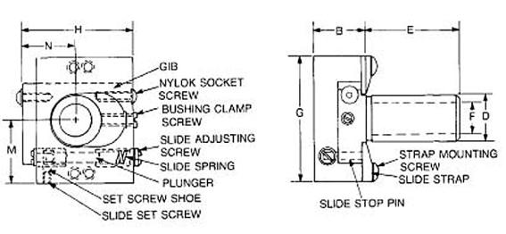 This Slide Tool Body is a rugged holder with a one-inch diameter shank which will accept any of three new heads for recessing,