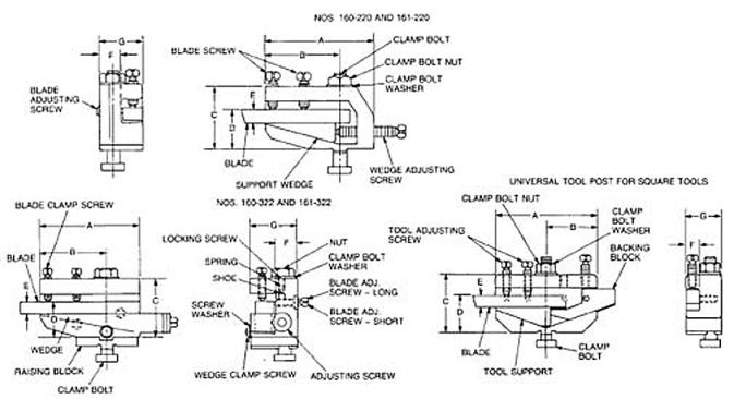 These tool posts have a rigid wedge support, are compact and easily adjusted. They are furnished